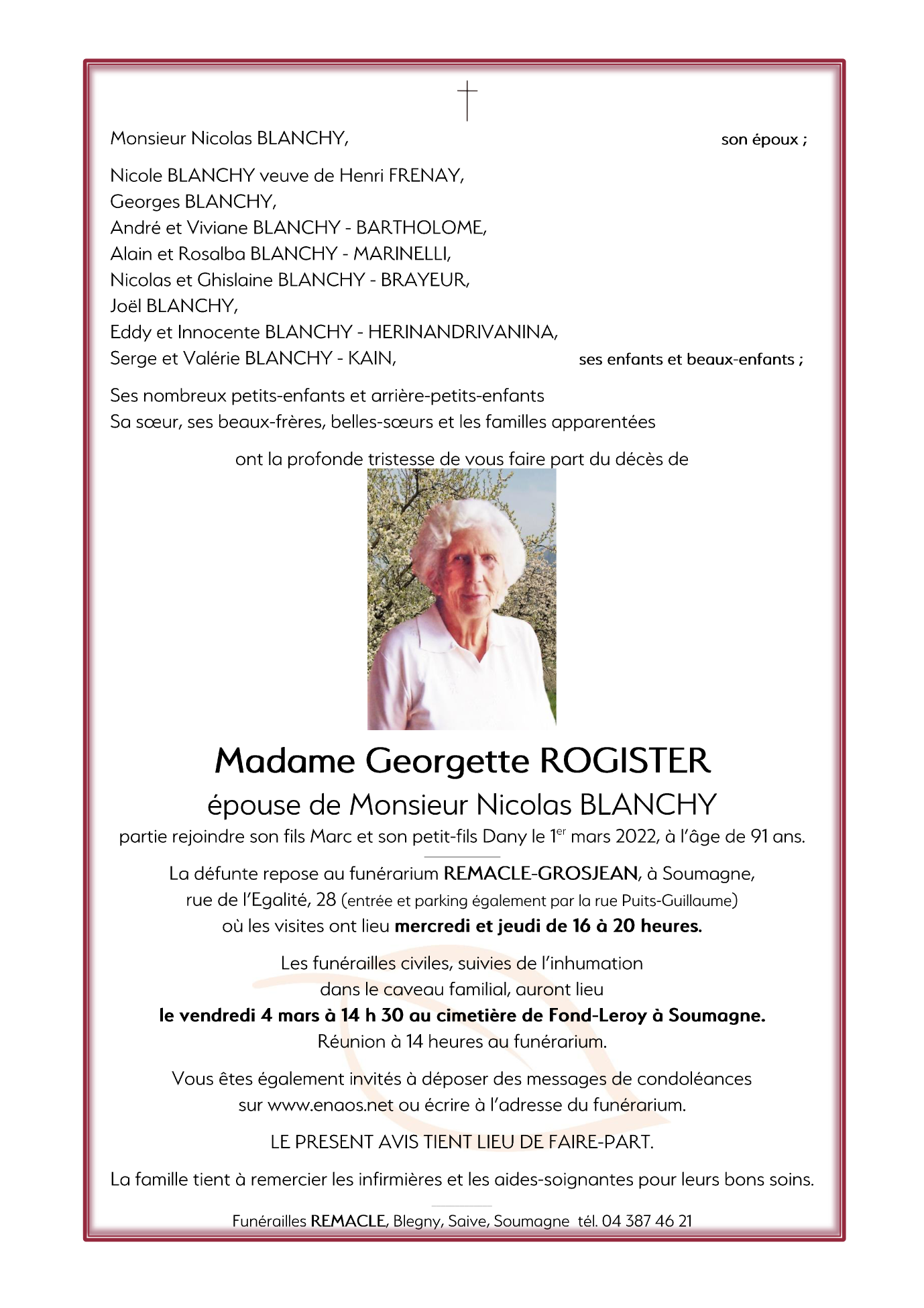 Funerailles Remacle Grosjean Deces De Madame Rkia Bousselham 19 04 2022 Annonce Necrologique |